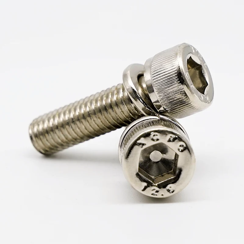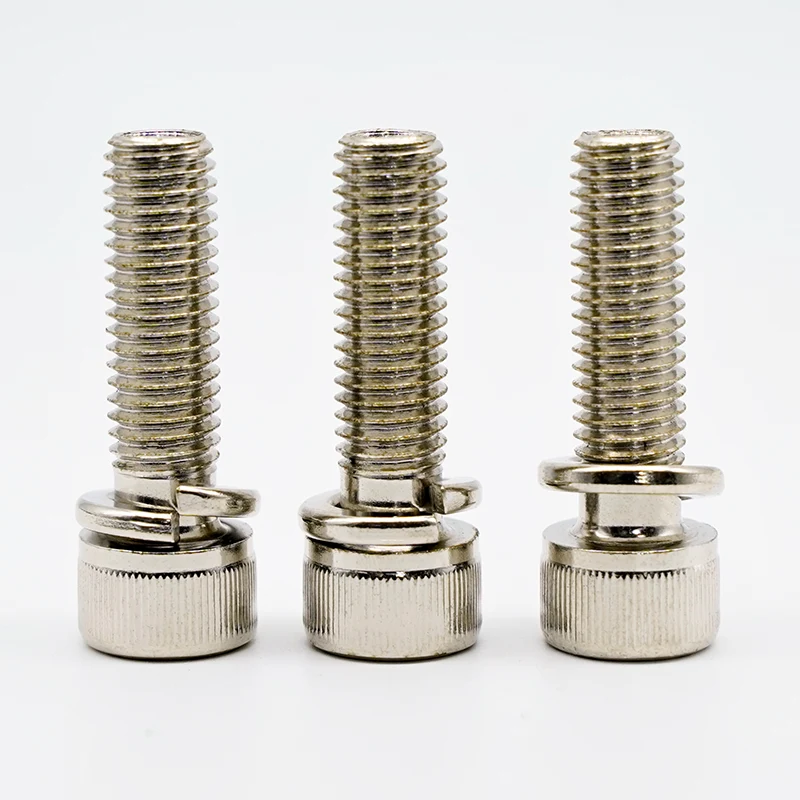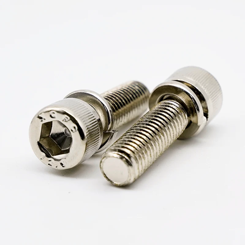 Ar línte cóimeála uathoibrithe, is féidir le scriúnna réamh-chóimeáilte éifeachtúlacht táirgthe a fheabhsú go suntasach, uaireanta saothair a shábháil, agus rátaí earráide a laghdú. Déantar ár Scriúnna Cap Ceann Soicéad Heics-Plátáilte Ard-neart le Niteoirí Earraigh faoi chóireáil a bhaint hidrigine, rud a chuireann deireadh le saincheisteanna breabaithe hidrigine. Toisc go bhfuil siad réamh-chéile agus ansin leictreaphlátáilte, tá an scriú, leicneáin earraigh, agus a gcuid pointí teagmhála go léir clúdaithe ag an plating, rud a chruthaíonn iomlán aontaithe. Soláthraíonn an plating nicil friotaíocht maith meirge agus creimeadh, le cuma aonfhoirmeach agus geal. Nuair a bhíonn an dá phíosa oibre atá á nascadh ina n-ábhar crua, cothrom nach bhfuil íogair do dhamáiste dromchla, cuireann Scriúnna Caipín Ceann Soicéad Heics-plátáilte le Niteoirí Earraigh cosc ar scaoileadh agus feabhsaíonn sé aeistéitic go héifeachtach. I gcásanna ina bhfuil gá le bearta bunúsacha frith-scaoilte agus lena dtugtar tús áite don chuma, cuireann sé réiteach comhtháite ar fáil.